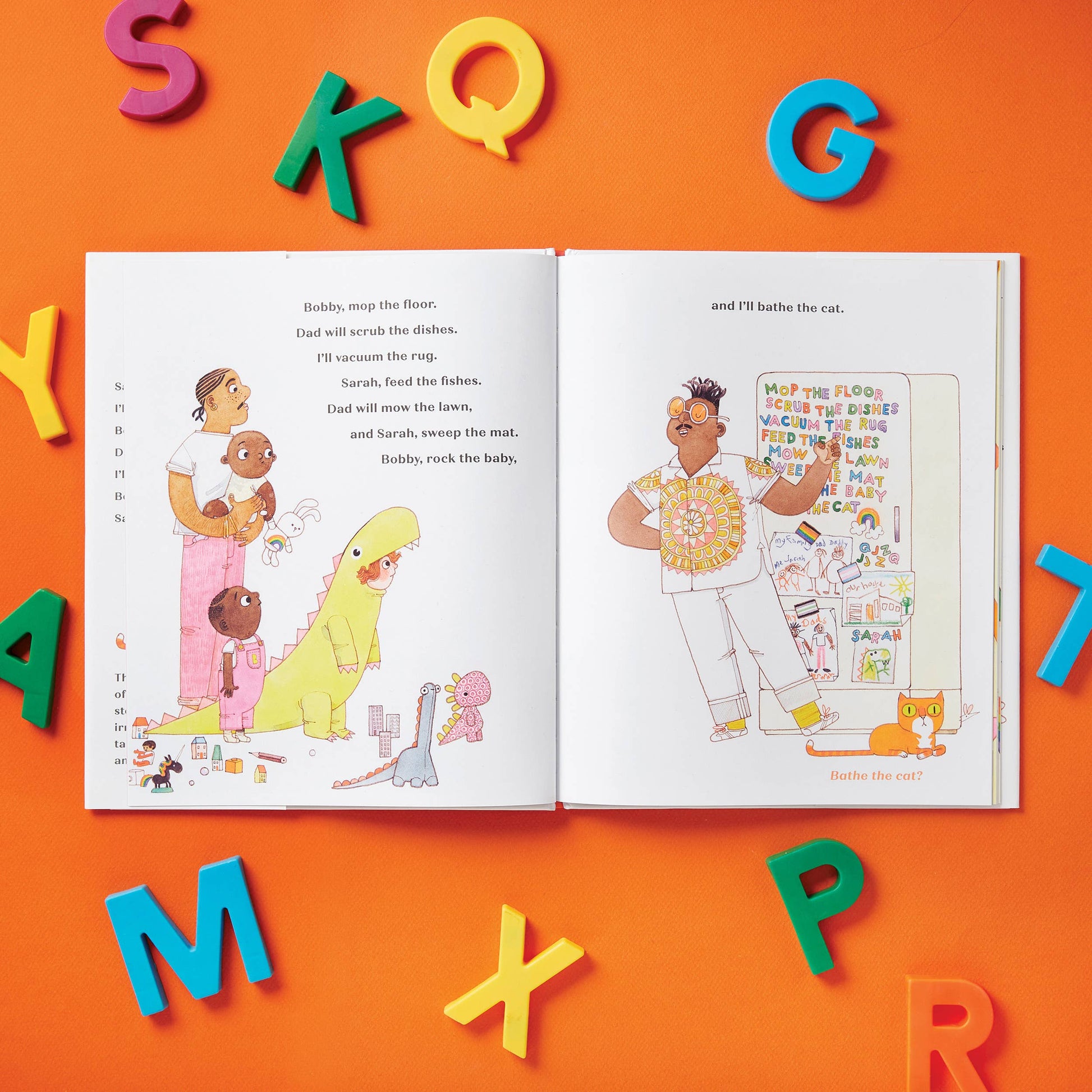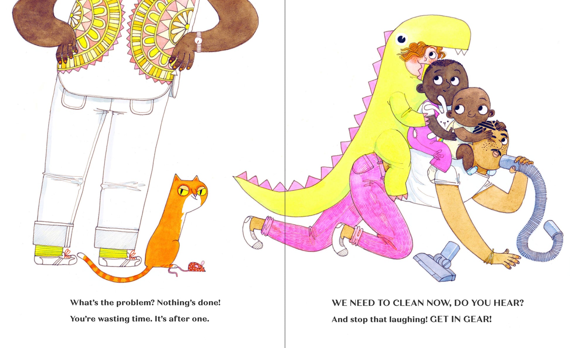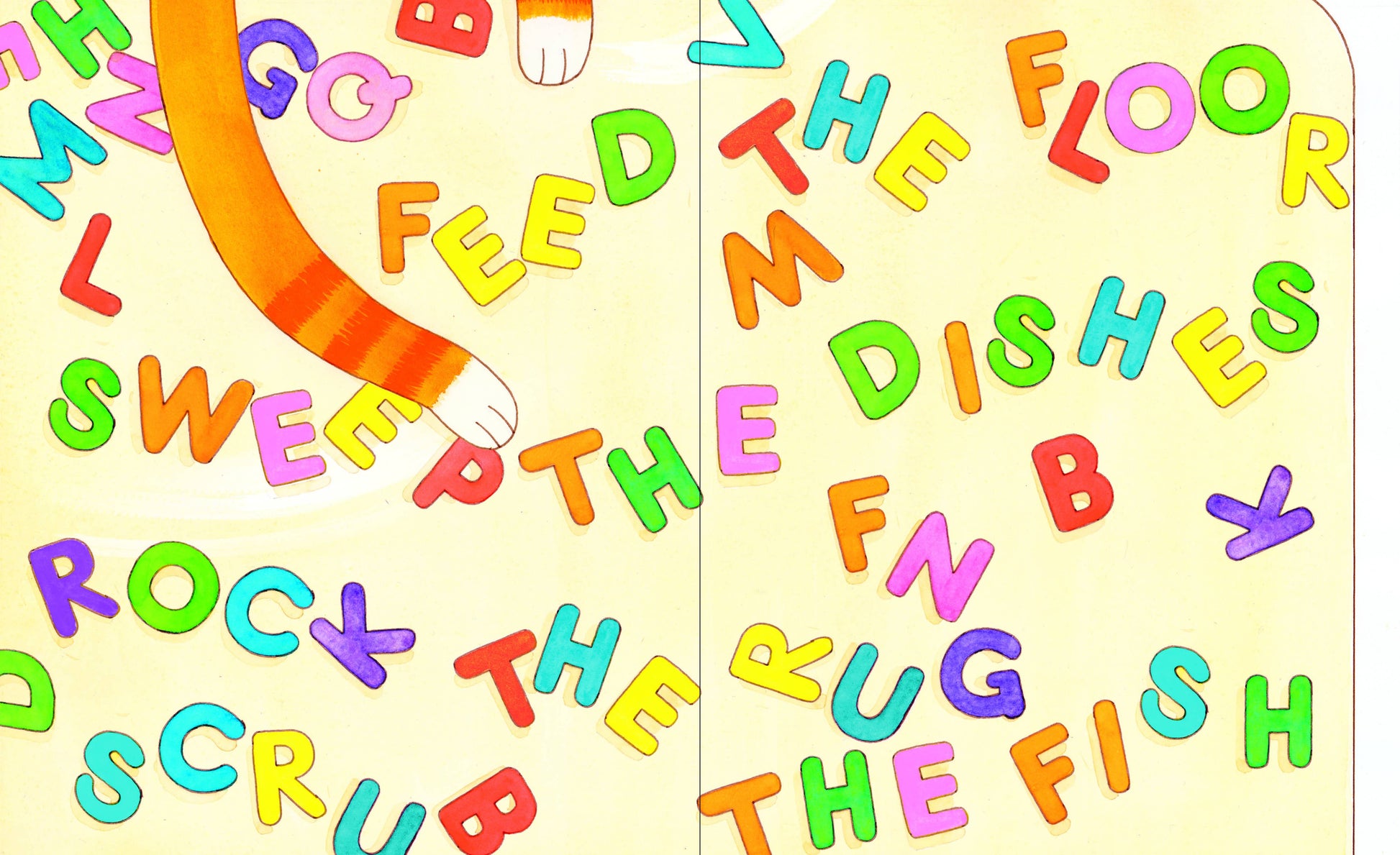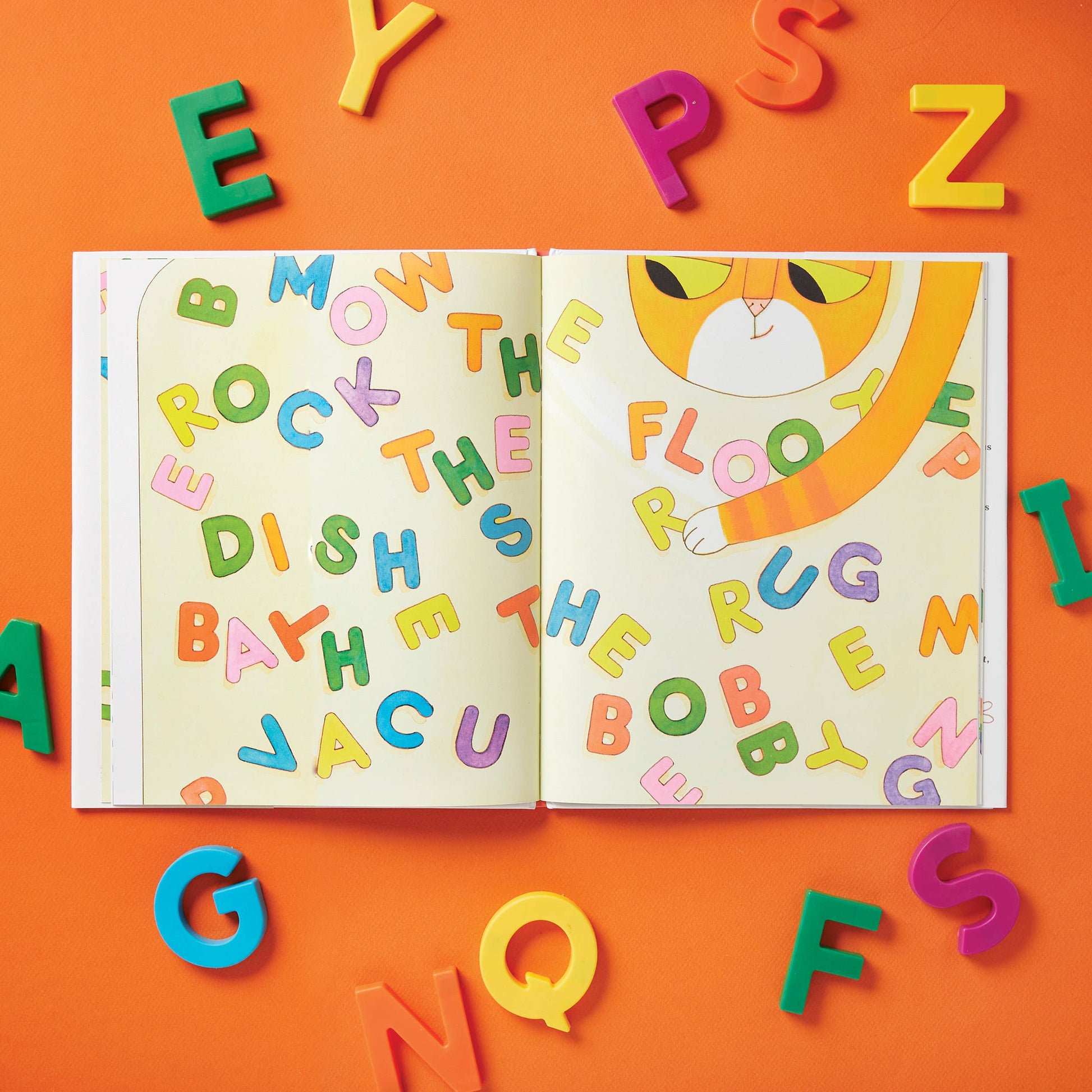 Bathe the floor? Sweep the dishes? This riotous romp of a picture book follows a frantic family as they try to get some chores done—with no help from the family cat, who keeps scrambling the list of chores with hilarious effects. Get ready for a rollicking read-aloud with a truly purrfect ending.