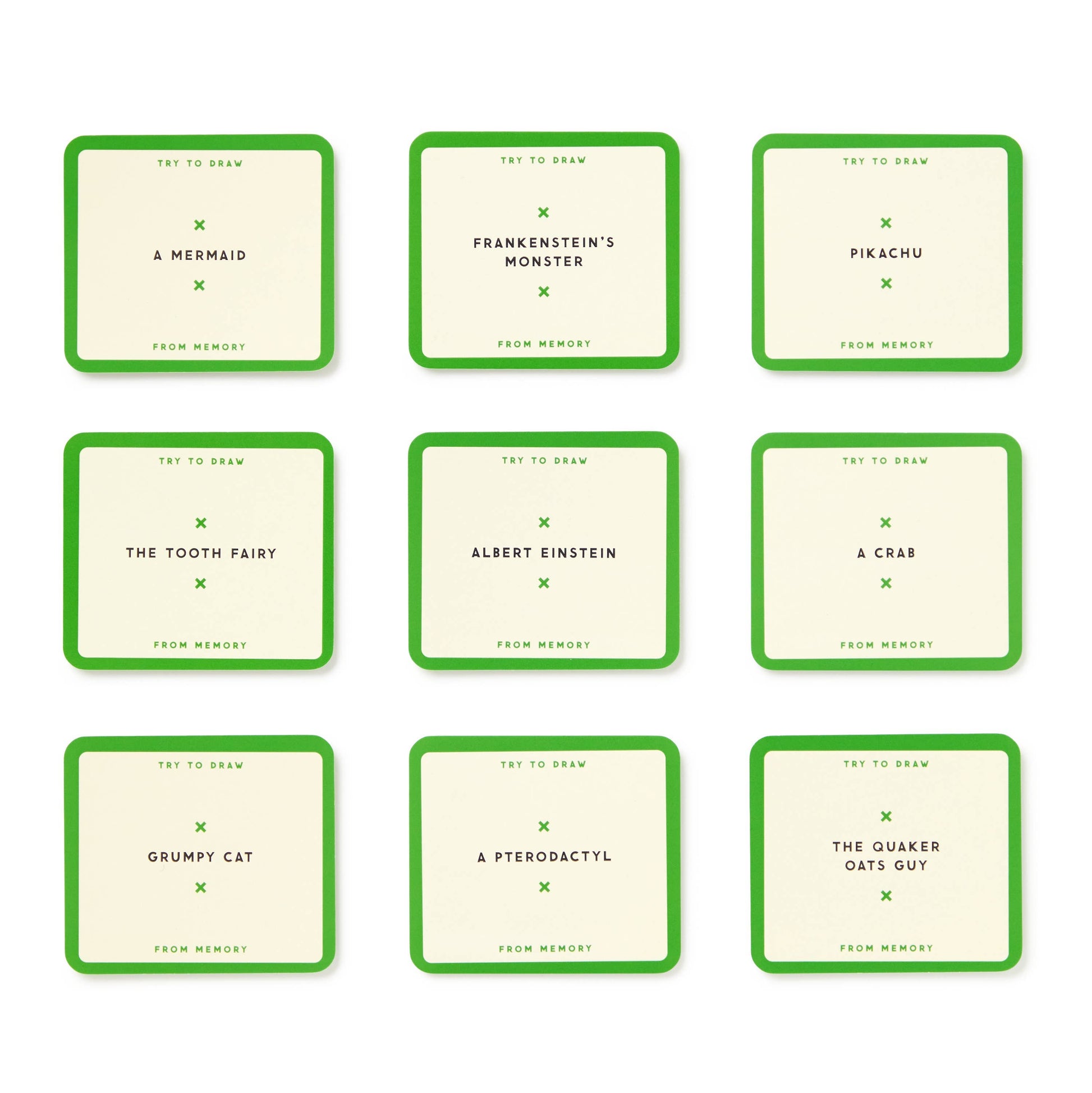 Finally, a drawing game that’s even better when you can’t draw. Inside you’ll find a pad of paper with 86 pages and 500+ prompts, each featuring a well-known character, animal, or object to draw and players compete by trying their best to depict one, all from memory alone.