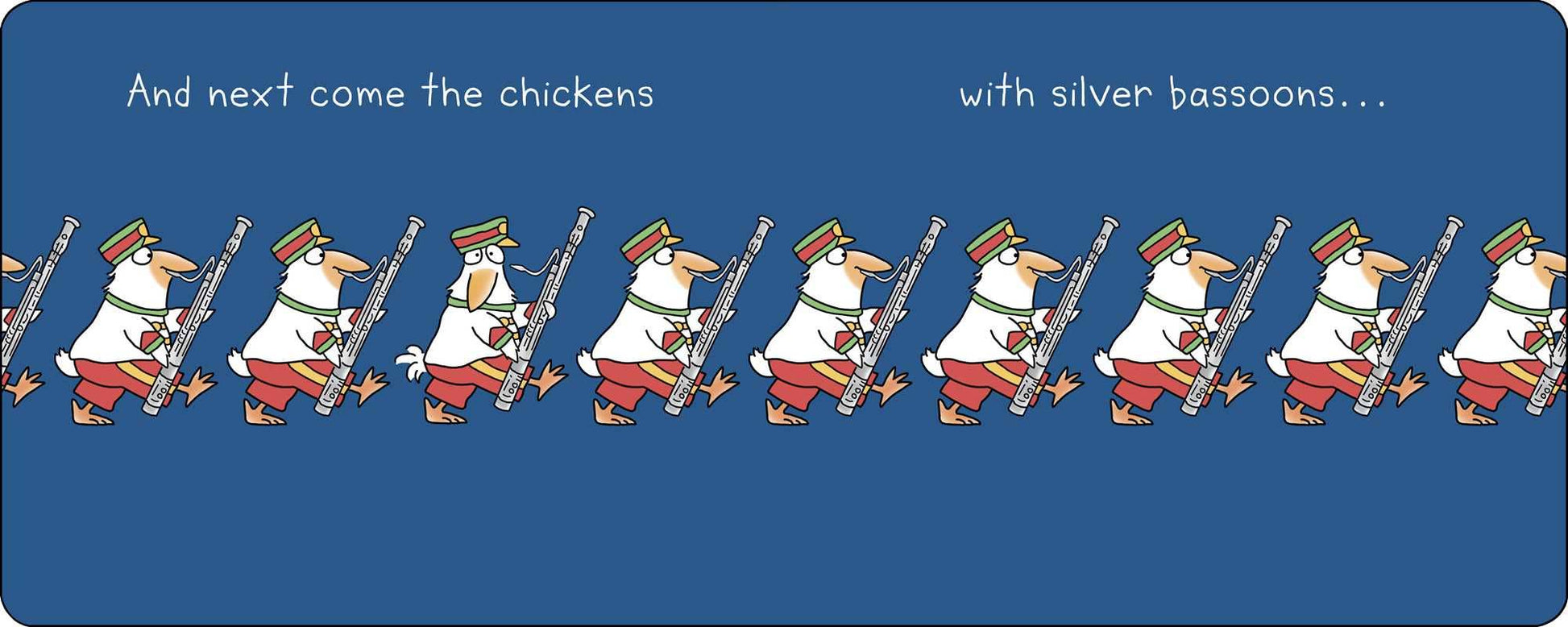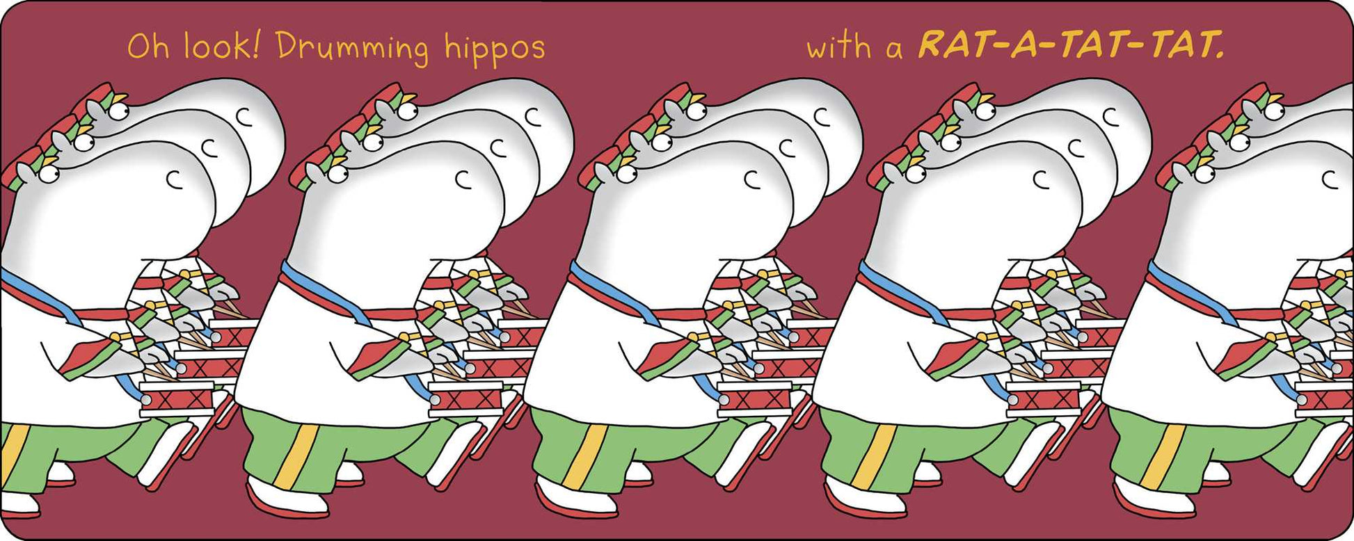 [Little Simon] From this rousing beginning unfolds Christmas Parade, a merry board book filled with hilarious characters from the one and only Sandra Boynton! Written with the irresistible rhythm of a lively marching band and illustrated with Boynton’s signature characters, including chickens with bassoons, mice with piccolos, a tiny bird with a large tuba, and a Santa rhino with a sack full of presents, Christmas Parade is a superb present for young children and families everywhere.