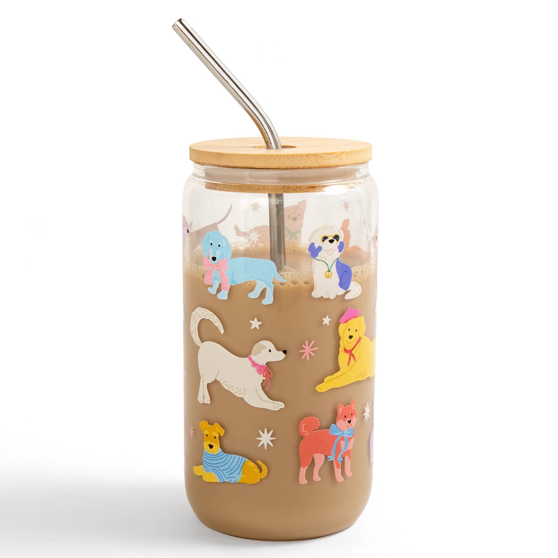 Show off your love for pups with our Dapper Dogs Glass Can! This vibrant drinking vessel features a delightful design showcasing an array of adorable dog breeds, including a Labrador, West Highland Terrier, Bichon Frise, Dachshund, Schnauzer, Shih Tzu, Corgi, Pug, Irish Setter, Dalmatian, Chihuahua, French Bulldog, Poodle, Old English Sheepdog, Cocker Spaniel, and Golden Retriever.