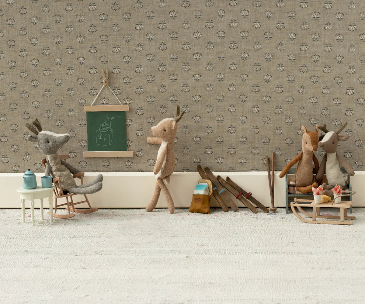 A sweet and adorable Deer Father who lives in the Gingerbread House with the rest of his family. He is the tallest of them all and has a furry belly, a fuzzy tail and antlers made of soft faux suede. Deer Father enjoys spending time with the mouse family and brings winter charm to your collection.
