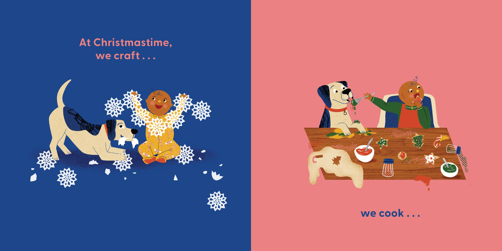 See these branches? They're not for tugging. See this ball? It's not for fetching. It’s the holiday season, and Dog smells a change in the air. With his new friend Baby by his side, Dog explores the many curious occurrences in his house–like a tree in the living room, new and delicious scents, and fragile balls that are not for fetching–as he gets into the Christmas spirit with his family.
