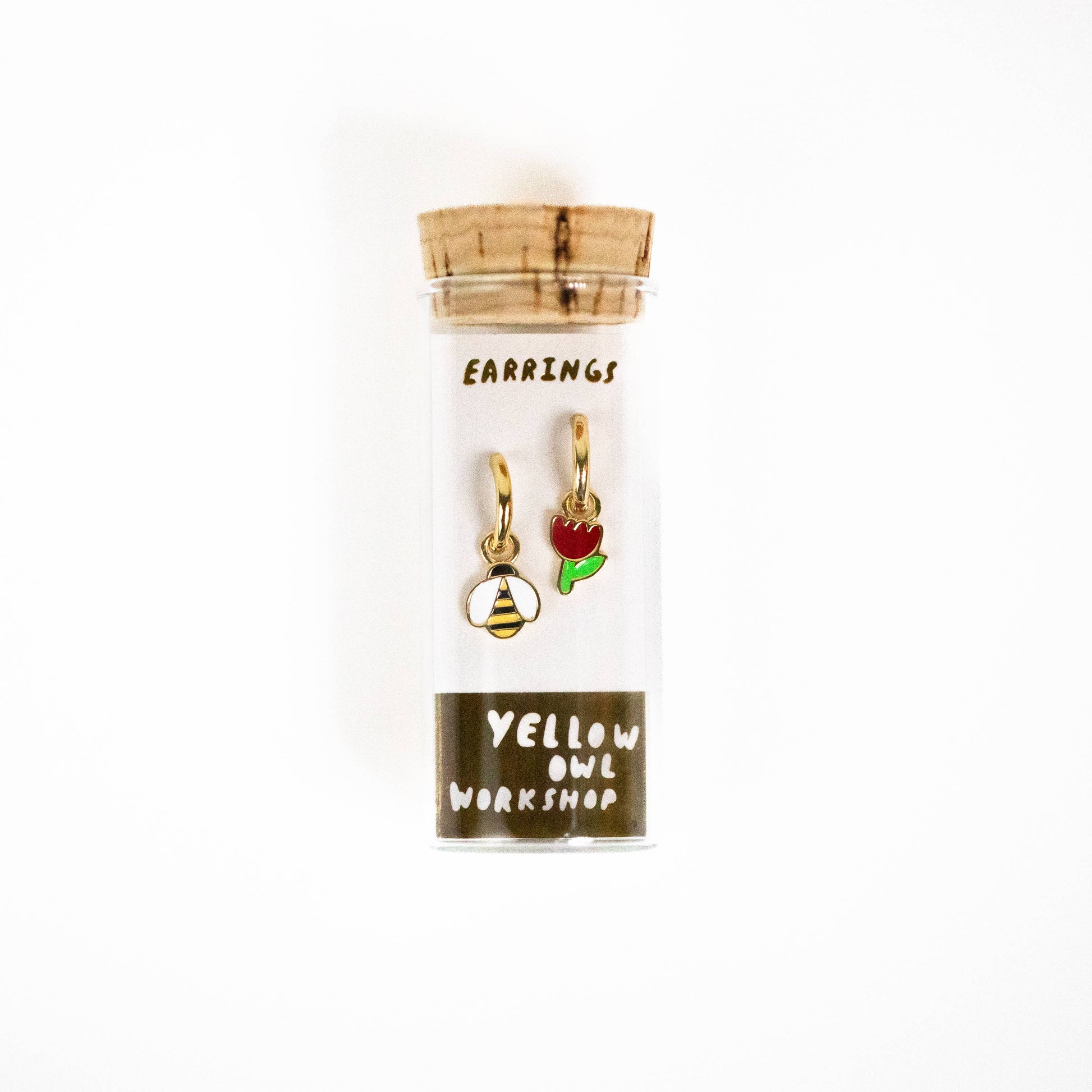 These sweet mismatched earrings feature a buzzy honeybee and a teeny tiny tulip—a match made in heaven. Wear one on each ear for a fun twist on your standard earrings, or double up on a single ear if you have a double piercing!