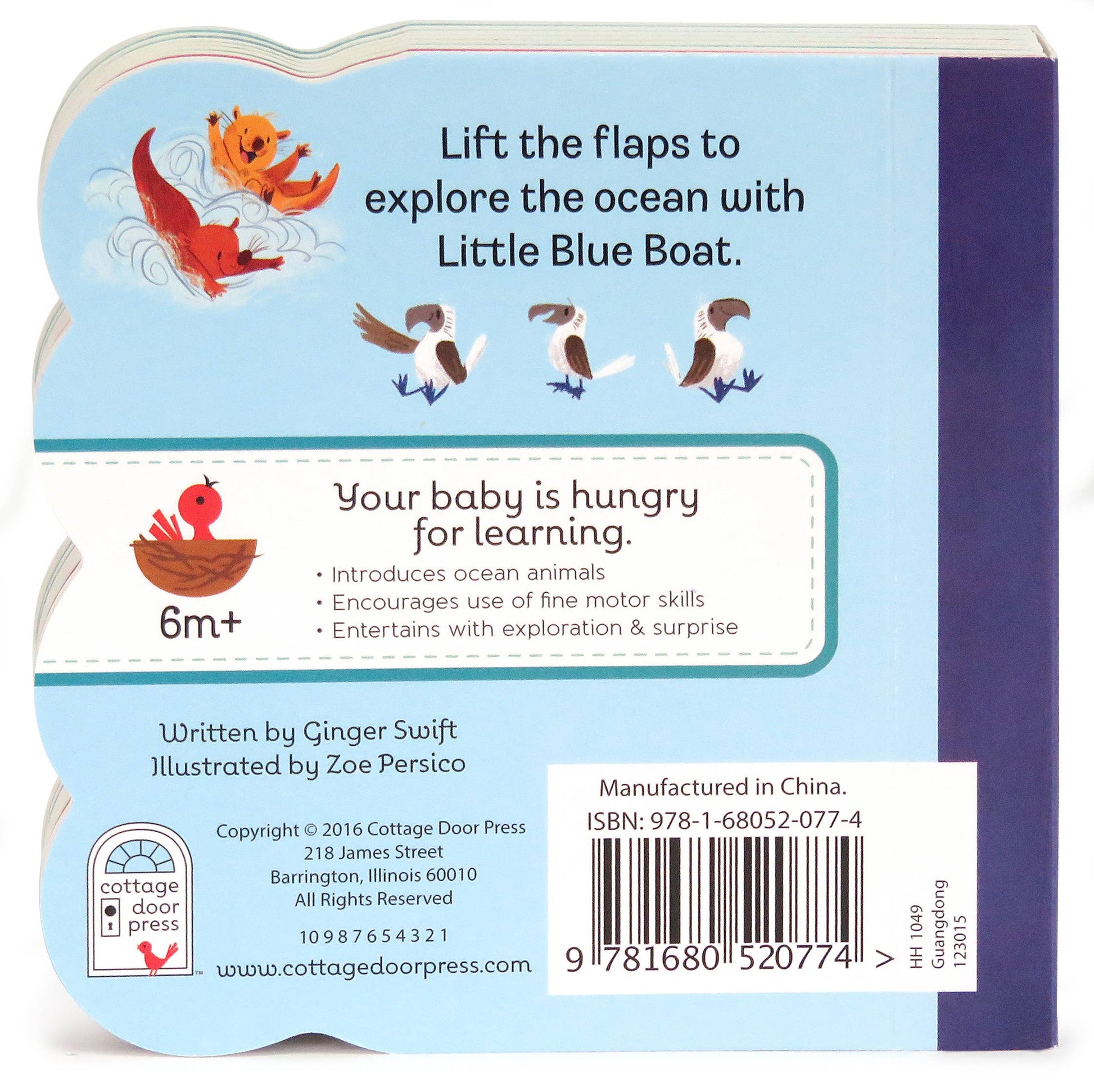 When you take the high seas with the Little Blue Boat, your baby or toddler will meet all kinds of ocean animals including dolphins, seals, otters, sharks, and more in this adorable lift-a-flap board book. Simple sentences reinforce future language structure while grasping and lifting the sturdy flaps helps develop fine motor skills. A perfect first book!