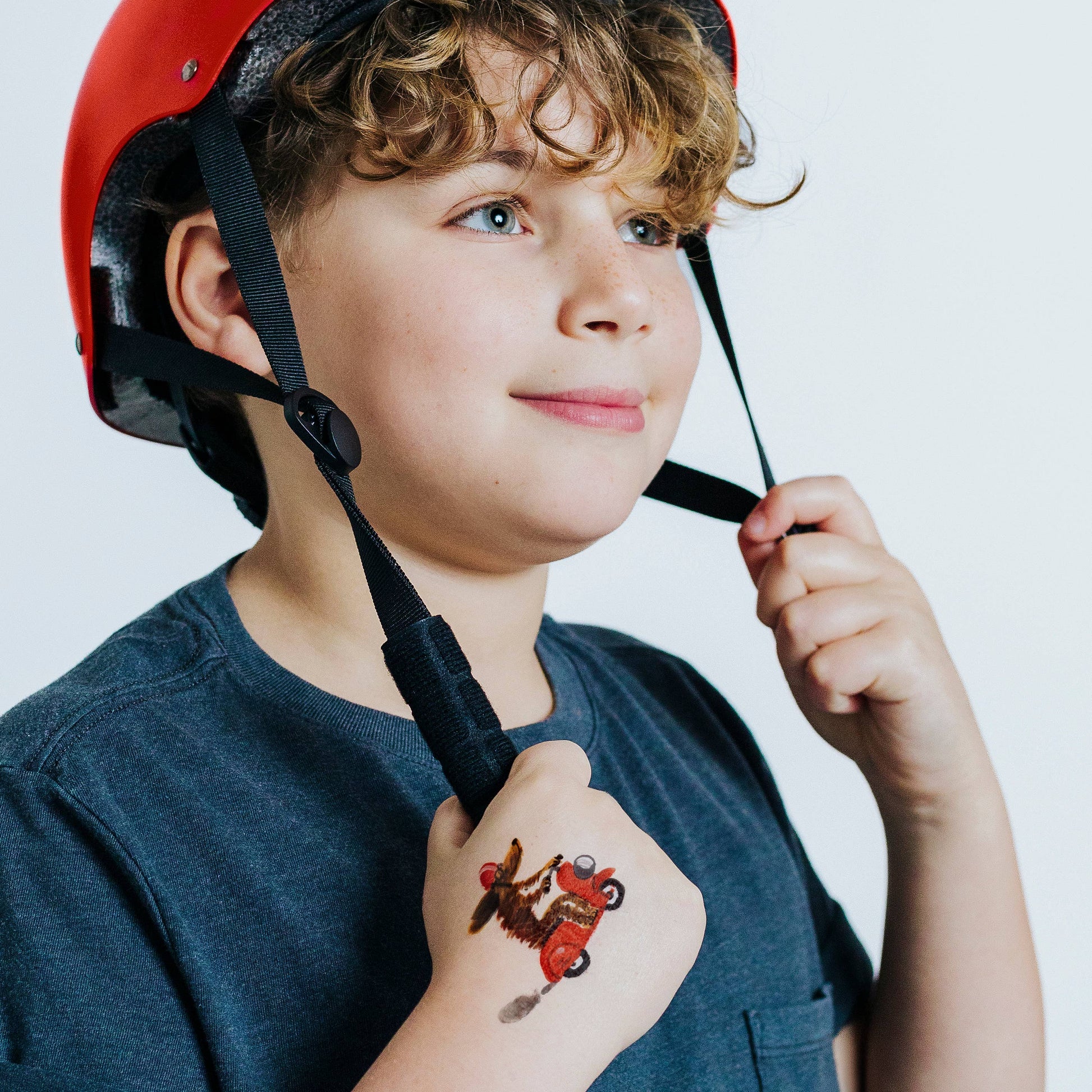 The Moto Pup Tattoo Pair from Tattly is a unique addition to the world of temporary tattoos. These designs are created by working artists, transforming tattoos into wearable art. Made with high-quality, vegan, and cruelty-free ink, these tattoos last for 2-4 days. They are water-resistant and suitable for all ages. This isn't just a temporary tattoo, it's a celebration of art, creativity, and self-expression. Enjoy the experience of wearing art with Tattly.