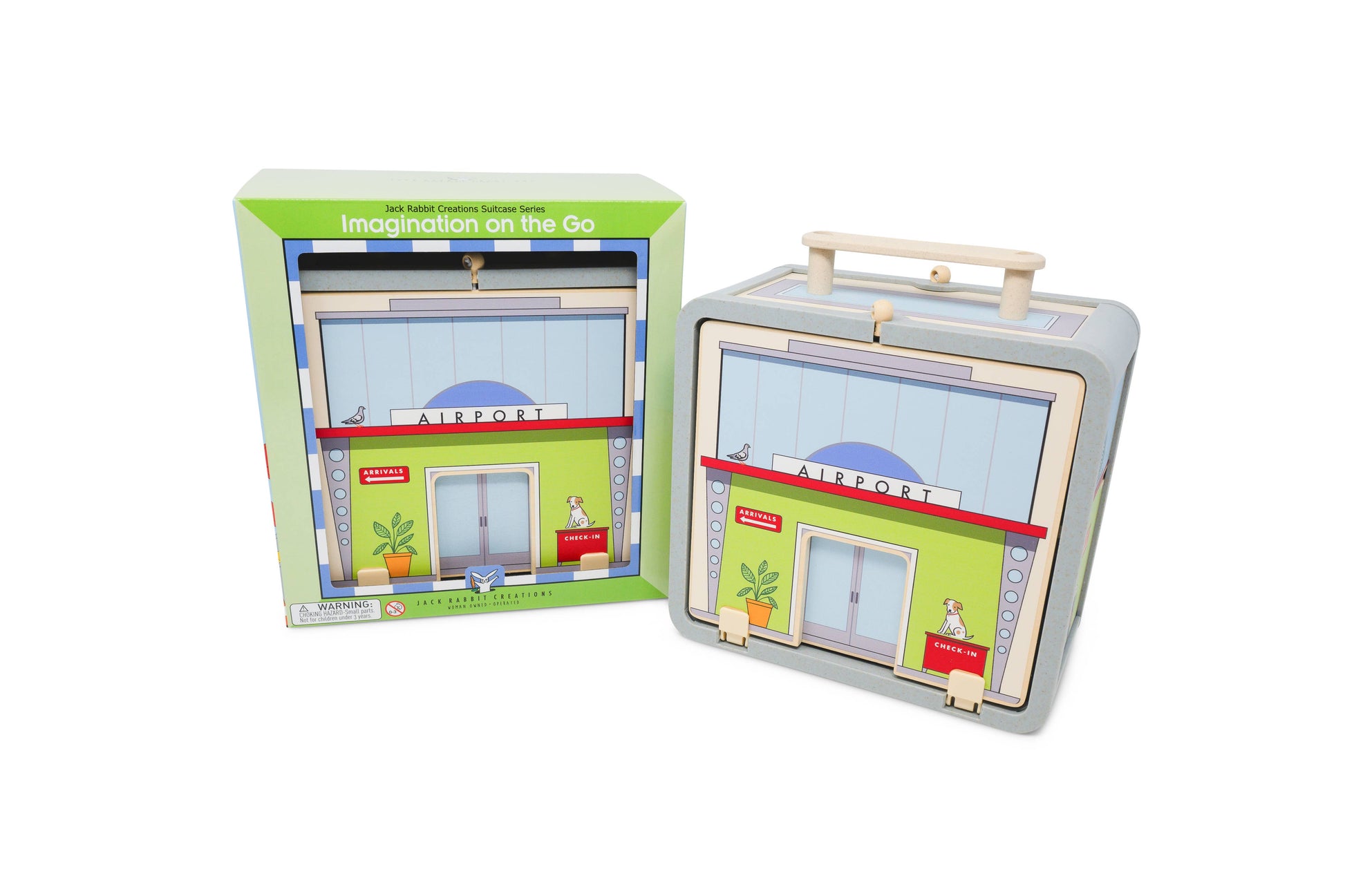 Our Suitcase Series encourages portable play and imagination-on-the-go. Each wooden suitcase opens up to a world of fun. The 18-piece Airport has everything you need for hours of fun, including planes, pilot, travelers with luggage, and more!