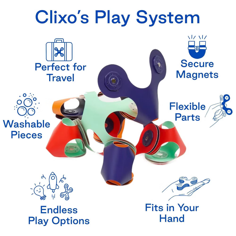 These 9 pieces of our signature Quad shape can make numerous clever creations. Whether you snap a snake, click a crown, roll a ball, or stack the shapes – a world of fun discoveries is in this pocket-sized-wonder pack in our space colors!