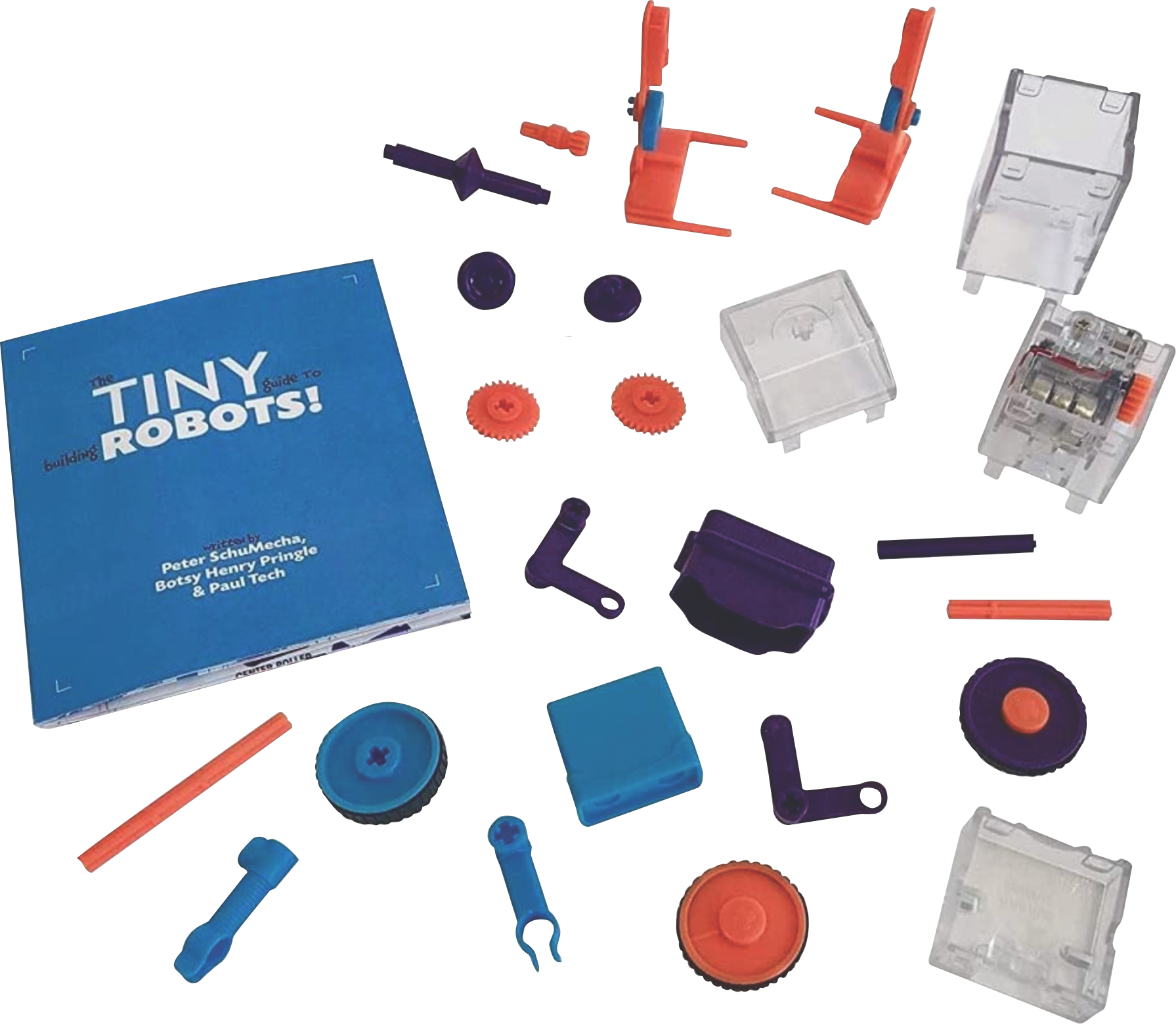 Gear up for fun with this adorable, motorized robotics kit! This 26-piece introduction to mini machines includes everything needed to build over 15 different robot configurations. The components let kids mix and match axles, wheels, arms, legs, and gears to create itty bitty bots that walk, roll, crawl, spin, and more! Budding engineers will learn basic mechanical engineering skills as they experiment with gears, axles, movement, and balance.