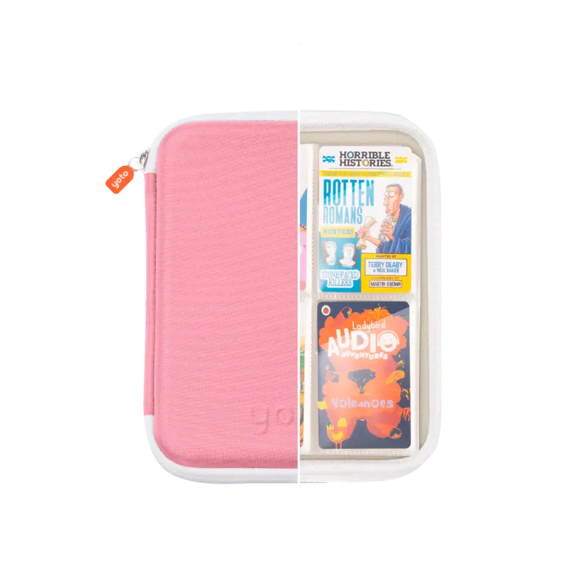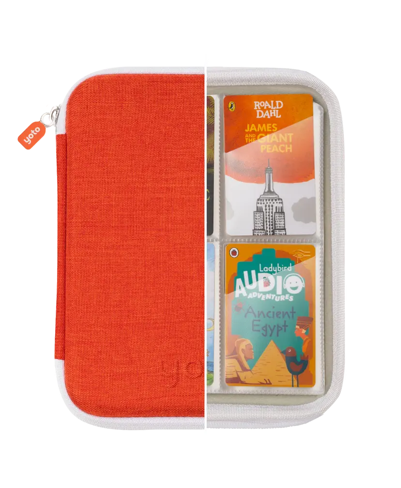 This soft-case folder holds up to 64 Yoto Cards - that’s a lot of listening! It has angled pockets to make storing cards easy for small hands, and a simple zipper to open and close.